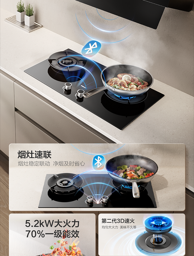 第二代3D速火高效烹,烟灶速联一步到位